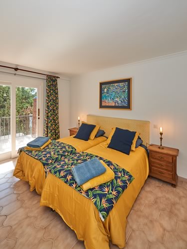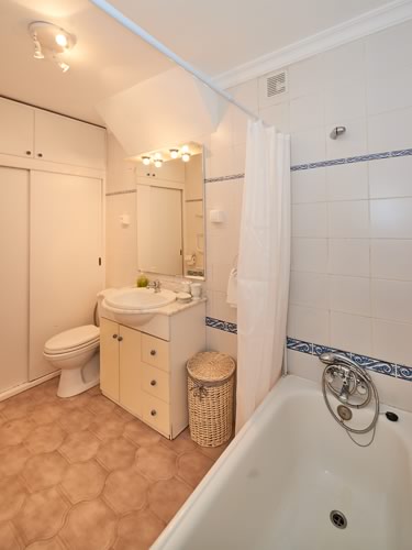 This spacious apartment comprises of 2 air conditioned bedrooms (1 x double, 1 x twin). Both bedrooms with ensuite bathrooms with WC, sink, and a shower over the bath.