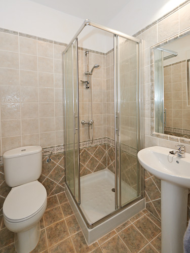 These 3 bedrooms share a bathroom that has a shower-over-the-bath, wc and basin, and a shower-room that has a walk-in shower, wc and basin. There is also a 3rd shower room with a walk-in shower, wc and basin that is situated on the floor below.