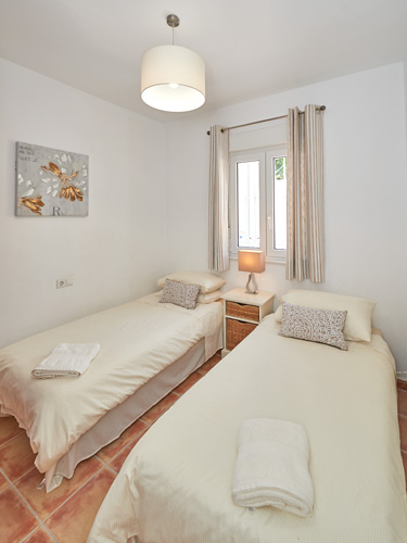 You enter No.6 Pueblo Valtocado on the upper level, here is located the 3 beautifully furnished air-conditioned bedrooms ... two of which have 2 x single beds and the 3rd a king size bed.