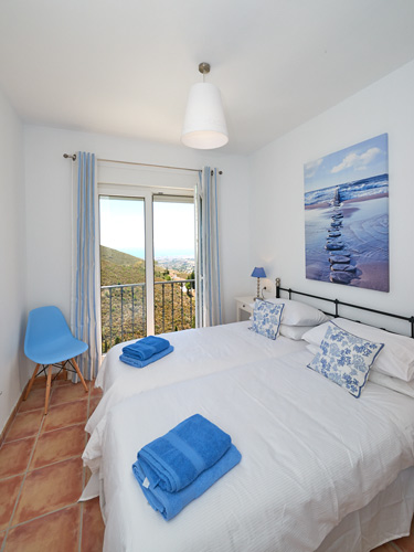 The double bedroom and one of the twin bedrooms have floor to ceiling picture windows, a balcony and fabulous views. The 2nd twin bedroom has a conventional window.
