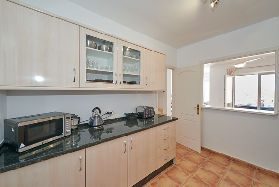 The lower level has a modern fully equipped kitchen that has electric hobs and oven, microwave, dishwasher, fridge/freezer, kettle, coffee maker etc. There is a separate utility room with a washing machine, iron & board. The spacious light and airy lounge has two ceiling fans, a large flat screen Smart TV, a DVD player and WiFi Internet (foc ... no extra charges).