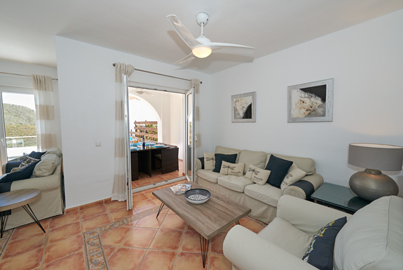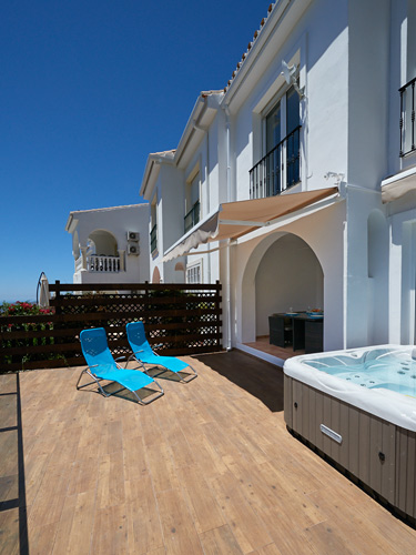 The lounge leads outside to a shaded dining area and a large south facing terrace that has sunbeds and should you require it, an electric 'toldo' shade. Here you will also find your own private Jacuzzi ... please note the Jacuzzi is only operational when Jacuzzi heating is booked at an additional £50 pw.
