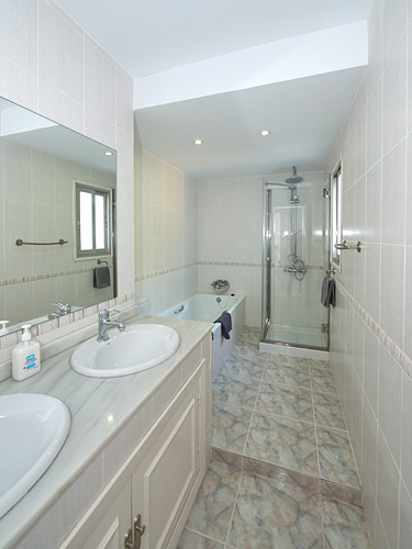 - Bathroom with twin vanity unit, walk-in shower and a bath