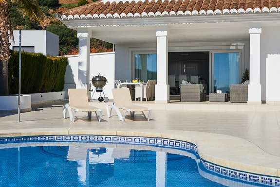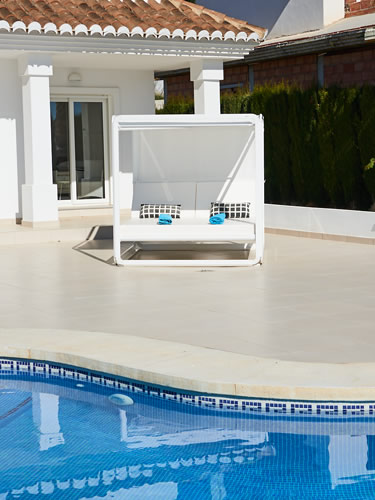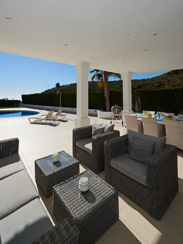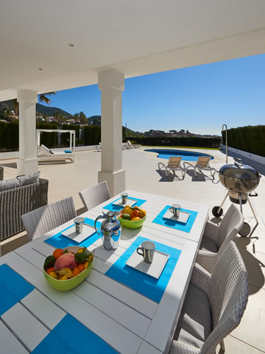 The shaded terrace that overlooks the pool is a lovely area to all sit down & enjoy time together sharing a BBQ'ed lunch. Iberico pork is particularly good here and ribs in BBQ sauce a particular favourite of mine. Fish is also plentiful and fresh, the fish & sea food counter in the supermarket at Corte Ingles has a fabulous choice. The wines of Spain are fantastic and they like to keep the best ones to themselves, what a better way to spend an evening than to sample different Riojas and Cavas ... ... if though on occasions you would prefer a chef to prepare your meals this can be arranged ... for this service please our Villa Catering page.