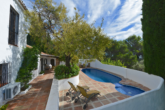 The pool is perfect for young children which incorporates a shallow (40 cm deep) pool which flows into the main pool ... both of which can be heated (additional charge). The main terrace & pool at Finca Los Gemelos are situated immediately outside the lounge and are all on the same level. Sun loungers and a parasol are provided for your use - and you can help yourself to the lemons from the trees but don't forget to bring your own G&T!