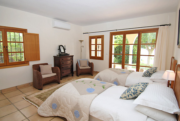 These three bedrooms have twin beds which can be joined together as desired, all benefit from air-conditioning & heating in the winter. The top right picture is of the front of the guest house and the photograph next to it is the main house (Villa Bancales) viewed from the guest house patio.