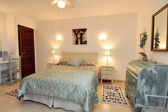 Villa La Cornisa is built on two floors - you enter the house on the upper floor which has the lounge/dining room, kitchen & the master bedroom that has a double bed and an en suite bathroom.
