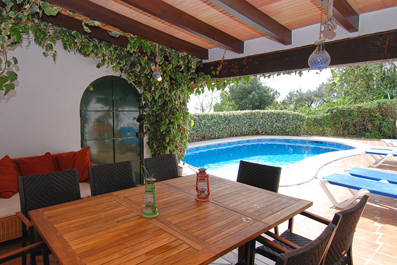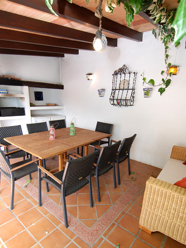 Next to the pool is a shaded casita with a built-in Andalucian style BBQ and a table with seating for 8.