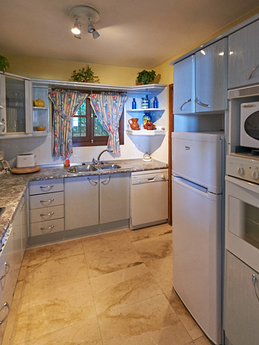 The kitchen is fully equipped with electric oven and gas hobs, fridge freezer, microwave and a dishwasher. There is an adjoining pantry with washing machine. The living area is spacious and comfortable, with marble floors and windows with panoramic views. The dining area leads on to an outdoor dining terrace. TV + IPTV (TV via the Internet), DVD player and a CD player are provided. Villa Cornisa is partially air-conditioned (with heating in the winter) - this is included in the tariff, there is no extra charge.