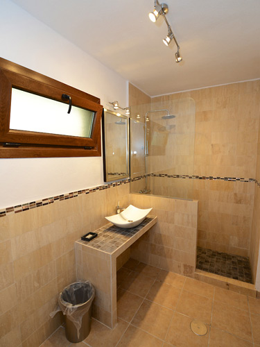 All of the 4 bedrooms have use of their own bathroom or shower-room. The spacious master bedroom has a king size bed, en suite shower-room (with a large walk-in shower, wc & basin) and its own private terrace. The middle twin bedroom has a bathroom opposite with shower over bath, sink, bidet and w/c. The last twin bedroom in the main house has a shower-room opposite with a walk in shower, w/c and sink.